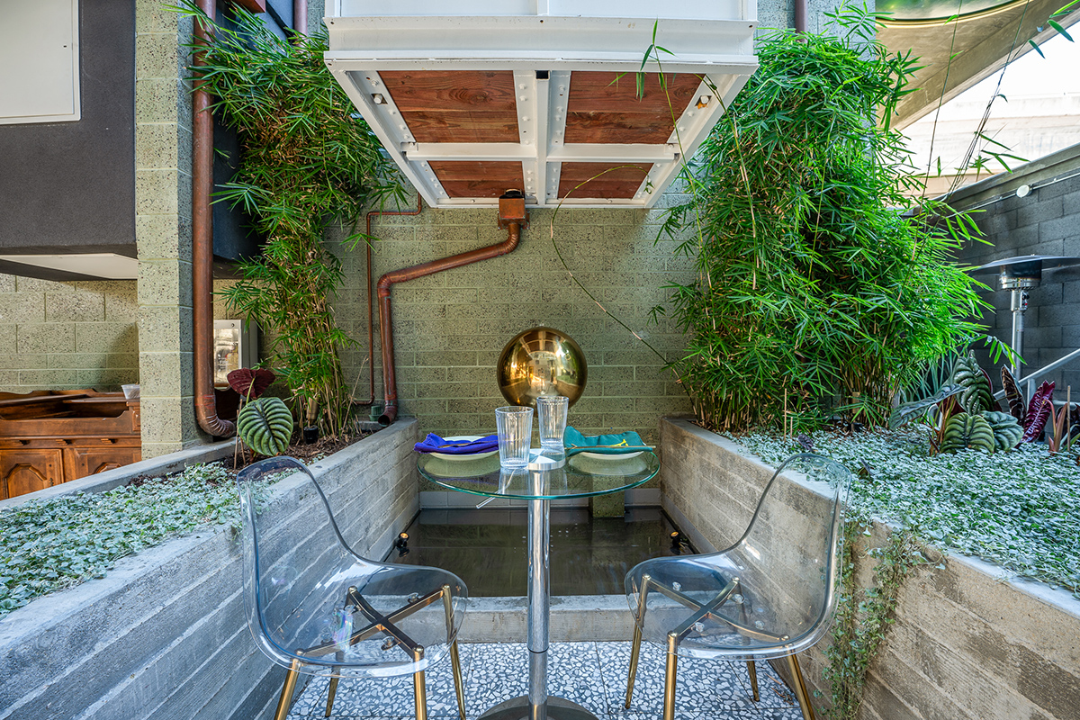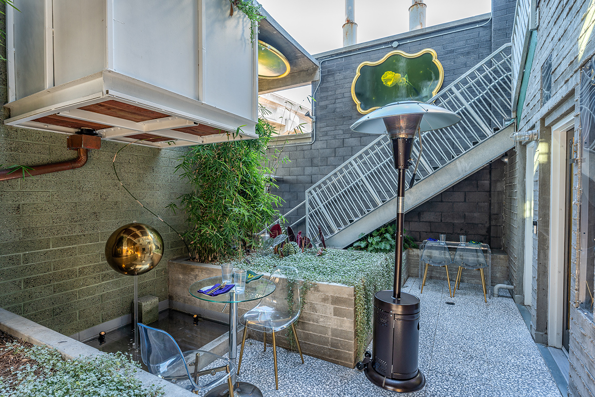 The central open air courtyard is shared with Alchemy | Choose Thy Poison and their restaurant patrons. There are tables and chairs in the courtyard that are serviced by Alchemy | Choose Thy Poison. The area is open to the public but also an amenity to the hotel guests so please make yourself at home.