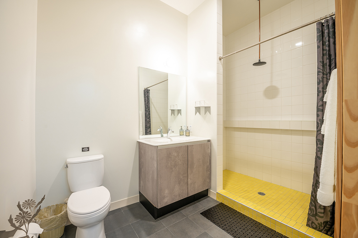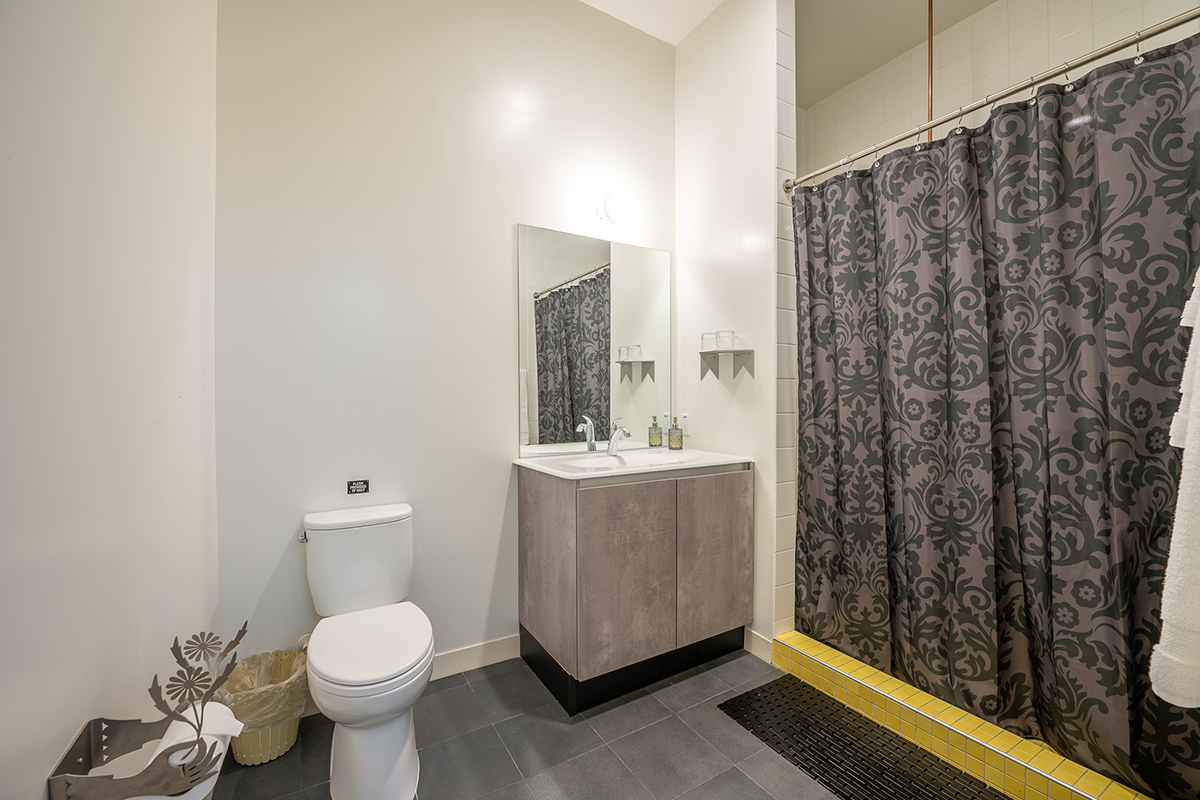 Room 3 is located on the second floor of our outdoor courtyard that is shared with our restaurant/bar, Alchemy | Choose Thy Poison, which is a lively environment with music and restaurant patrons that can last until 10 PM. The central boiler room for the entire building is below Room 3. Guests in this room will hear the noise of the boiler turning on to heat up the building's water every so often. Room 3 is not a good room for noise sensitive guests.